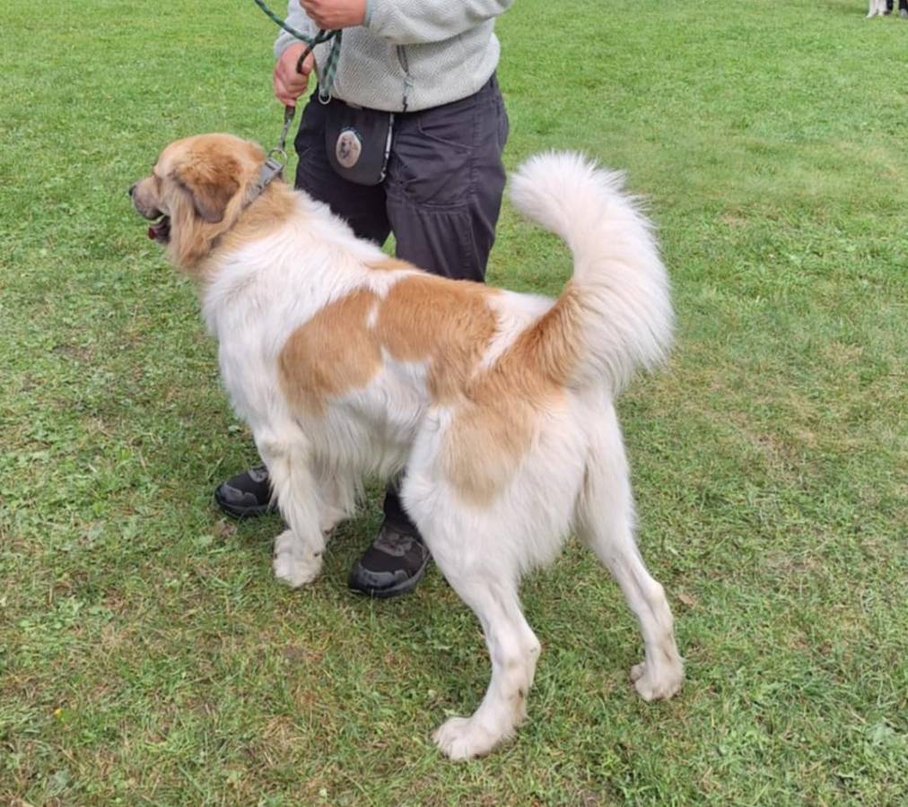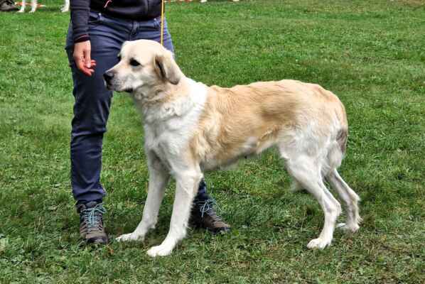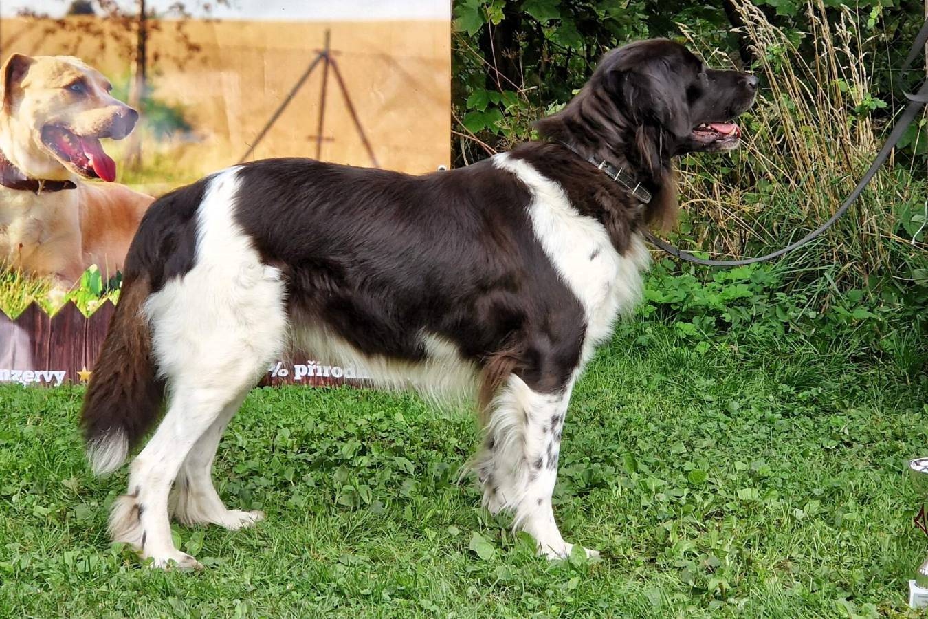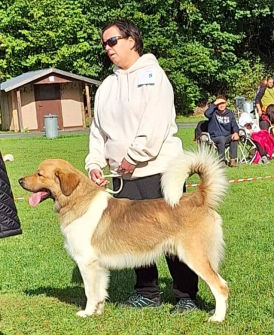 2mletý pes, střední síly kostry, správných proporcí, korektní hlava s výrazně širokou lebeční partií, světlejší oko, výborný pigment, výborný front, korektní hřbetní linie, výborné úhlení pánevních končetin, správný prostorný pohyb.
