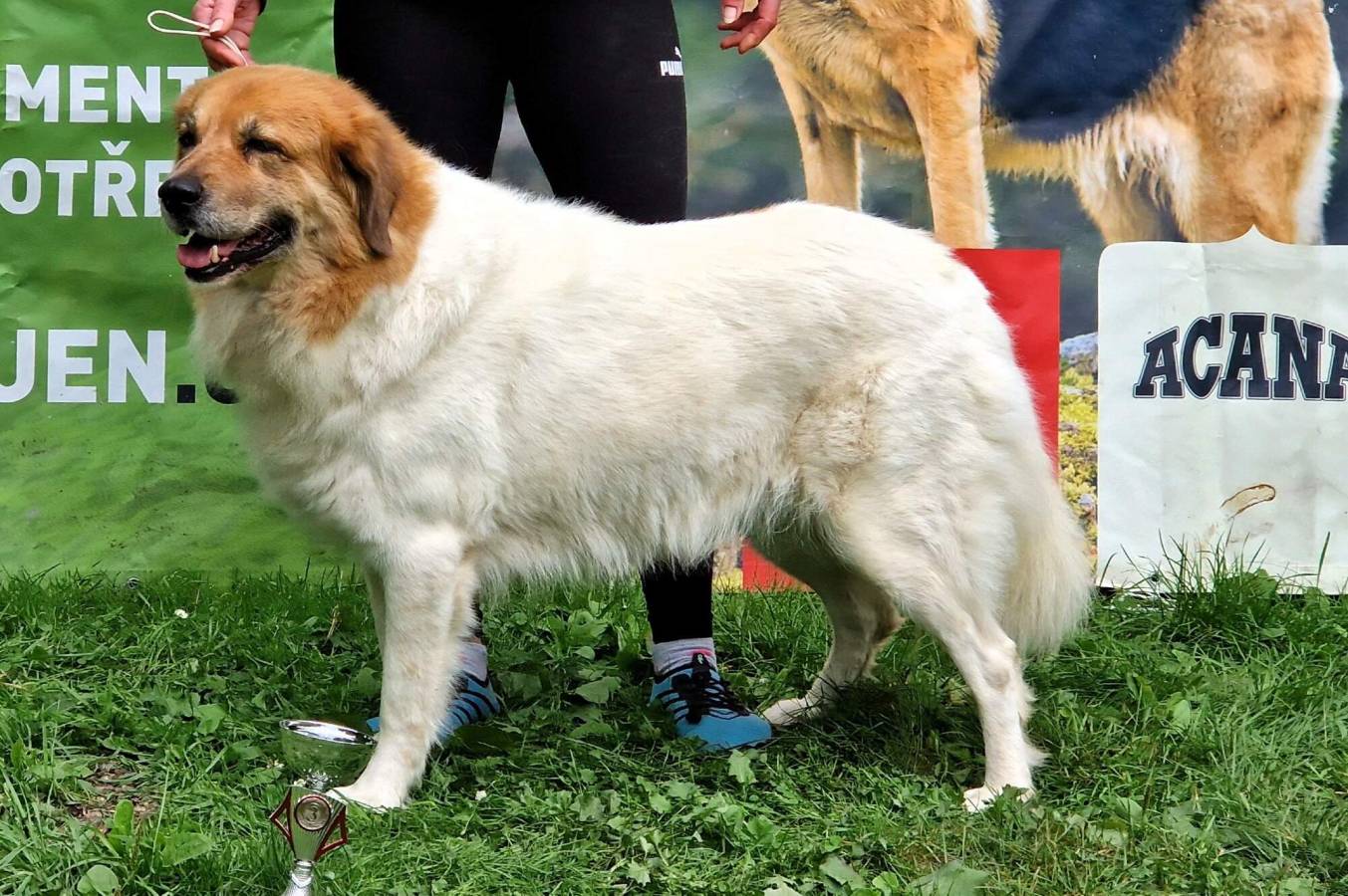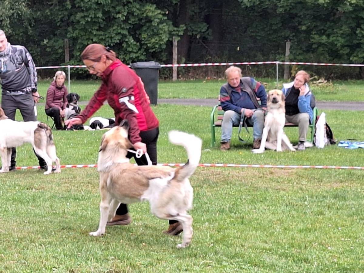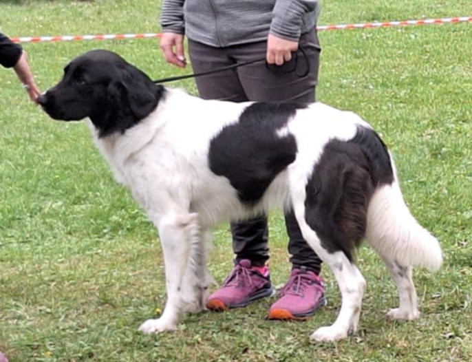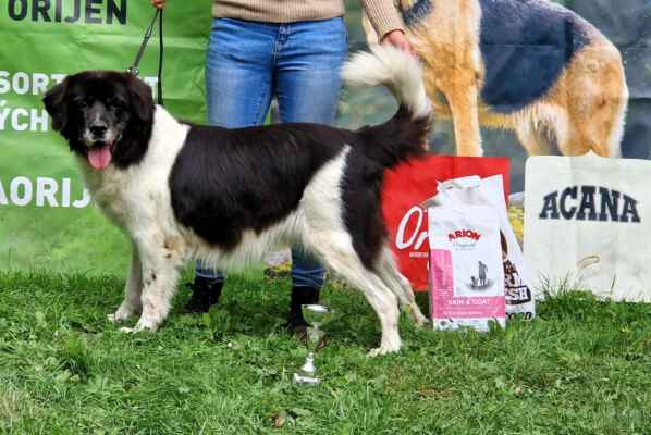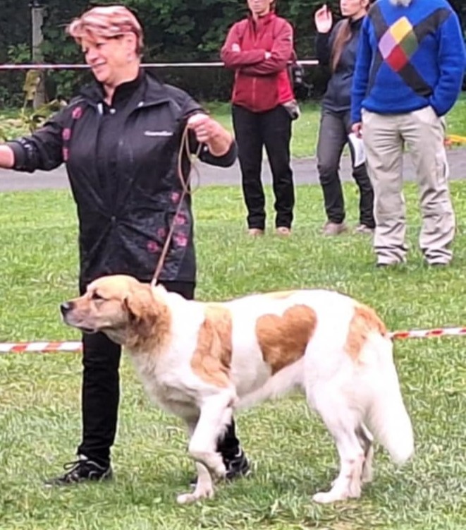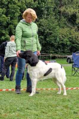 5 letá mohutná fena, výborného tělesného rámce i proporcí, ušlechtilá samičí hlava, středně hnědé oko, sytý pigment, výborný front, korektní hřbetní linie, korektní úhlední vzadu, v postoji lehce sbíhá v hleznech a vytáčí tlapky. Pohyb pravidelný, velmi prostorný a plynulý.