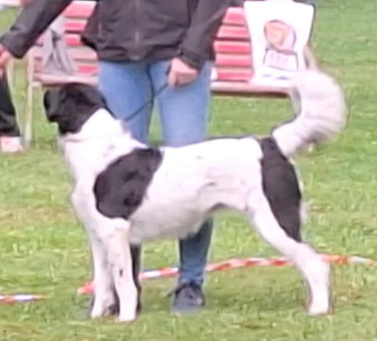 16měsíční pes, silné kostry, střední kohoutkové výšky, správného formátu, výrazná hlava s širší lebeční partií a kratším čenichem, středně hnědé oko, velmi dobrý pigment, nepříliš ideální hřbetní linie, hřbet mírně prověšený, správný pohyb, veselé předvedení.