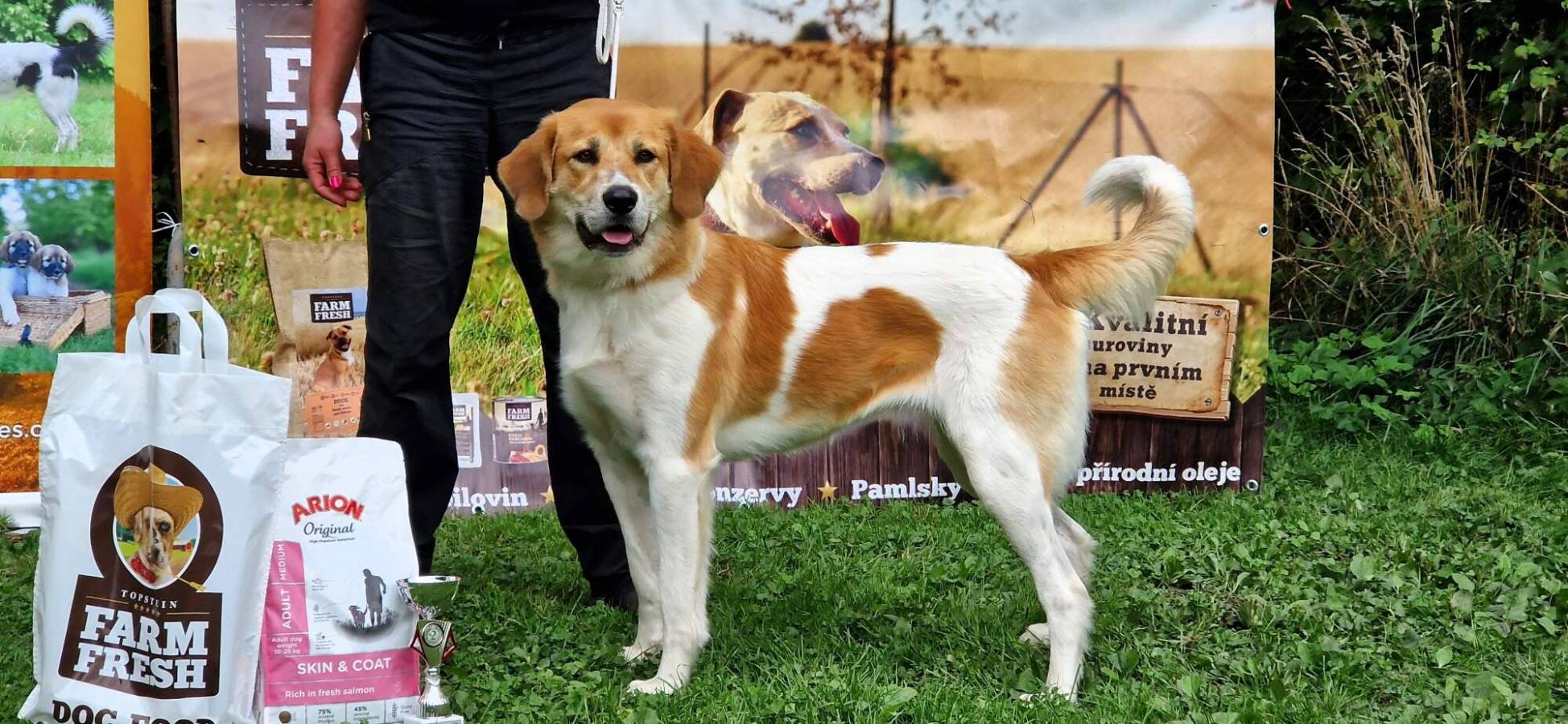 Roční pes silné kostry, správného formátu, výrazná samčí hlava, světlé oko, výborný pigment, výborný front, skus nůžkový, výborné úhlení pánevních končetin, spráný pravidelný pohyb, přátelská povaha. Chybí nahoře 2xP1