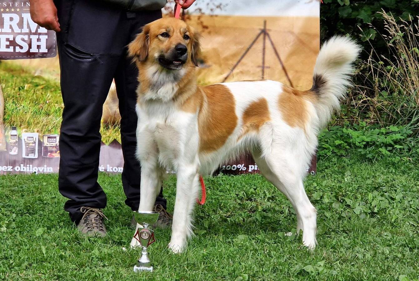 5 měsíční pes, výborných proporcí, správný formát, korektní hlava, středně hnědé oko, nůžkový skus, správný front, korektní úhlední končetin, pravidelný pohyb, milá přátelská povaha.
