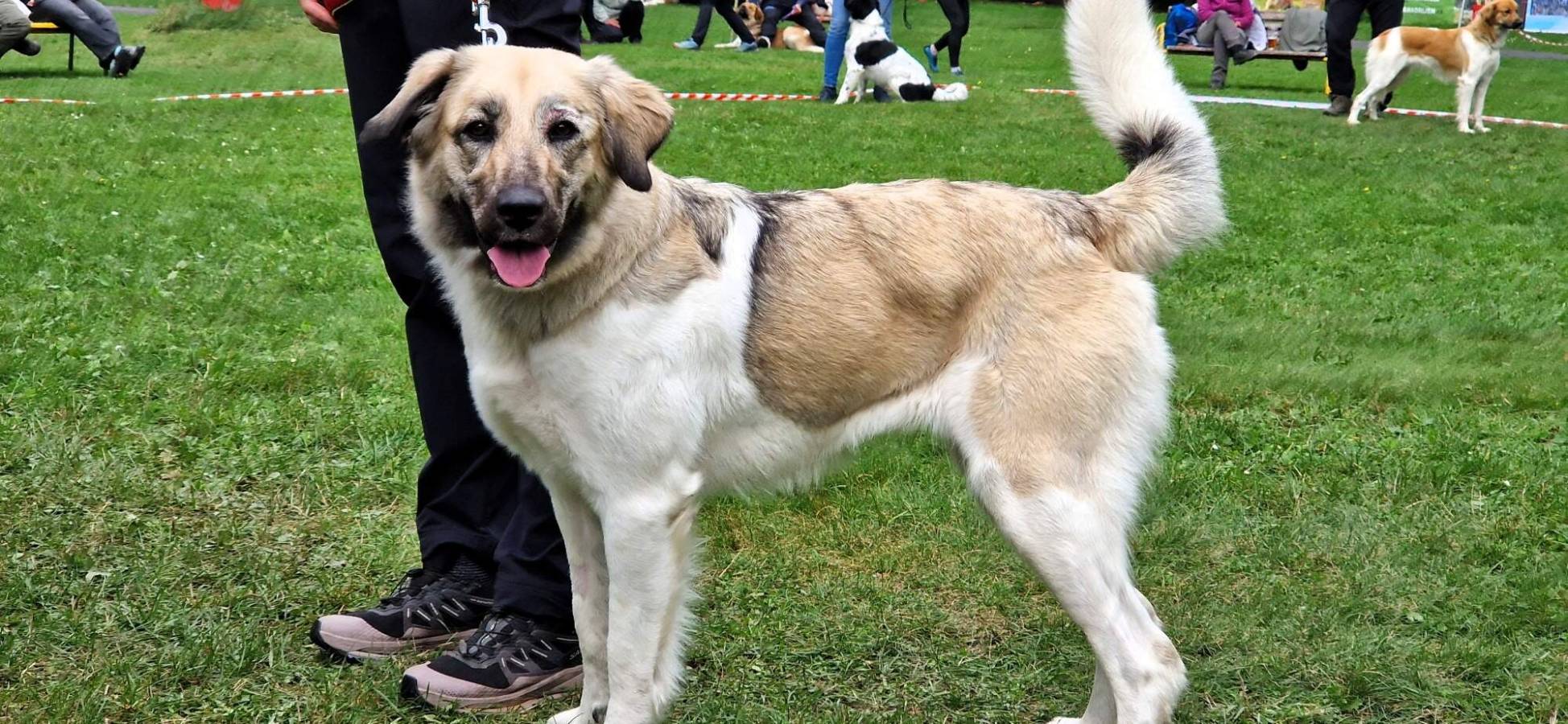 2mletý pes, střední síly kostry, správných proporcí, korektní hlava s výrazně širokou lebeční partií, světlejší oko, výborný pigment, výborný front, korektní hřbetní linie, výborné úhlení pánevních končetin, správný prostorný pohyb.