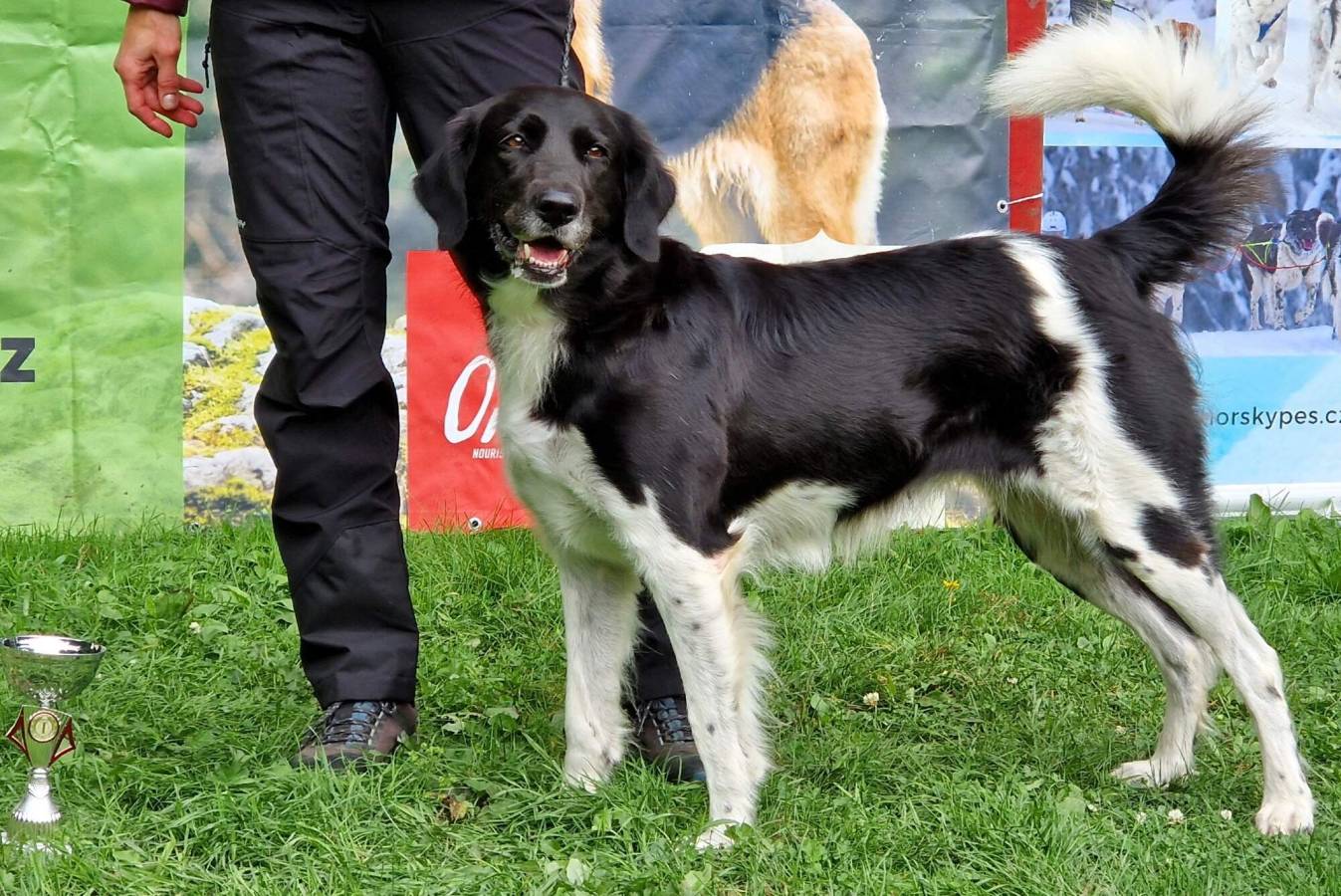 11 měsíční pes na horní hranici kohoutkové výšky, střední síly kostry, korektní hlava, světlejší oko, velmi dobrý pigment, strmější zaúhlení hrudních končetin, chybějící předhrudí, správné zaúhlení pánevních končetin, správný pohyb.